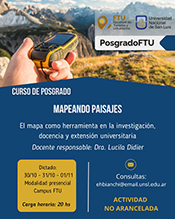 La FTU dará el Curso de Posgrado "Mapeando paisajes: el mapa como herramienta en la investigación, docencia y extensión universitaria". Desde la Secretaría de Investigación y Posgrado de la Facultad de Turismo y Urbanismo (FTU) se dictará el curso de Posgrado Mapeando paisajes: el mapa como herramienta en la investigación, docencia y extensión universitaria. Inicia el jueves 30 de octubre. Actividad no arancelada.